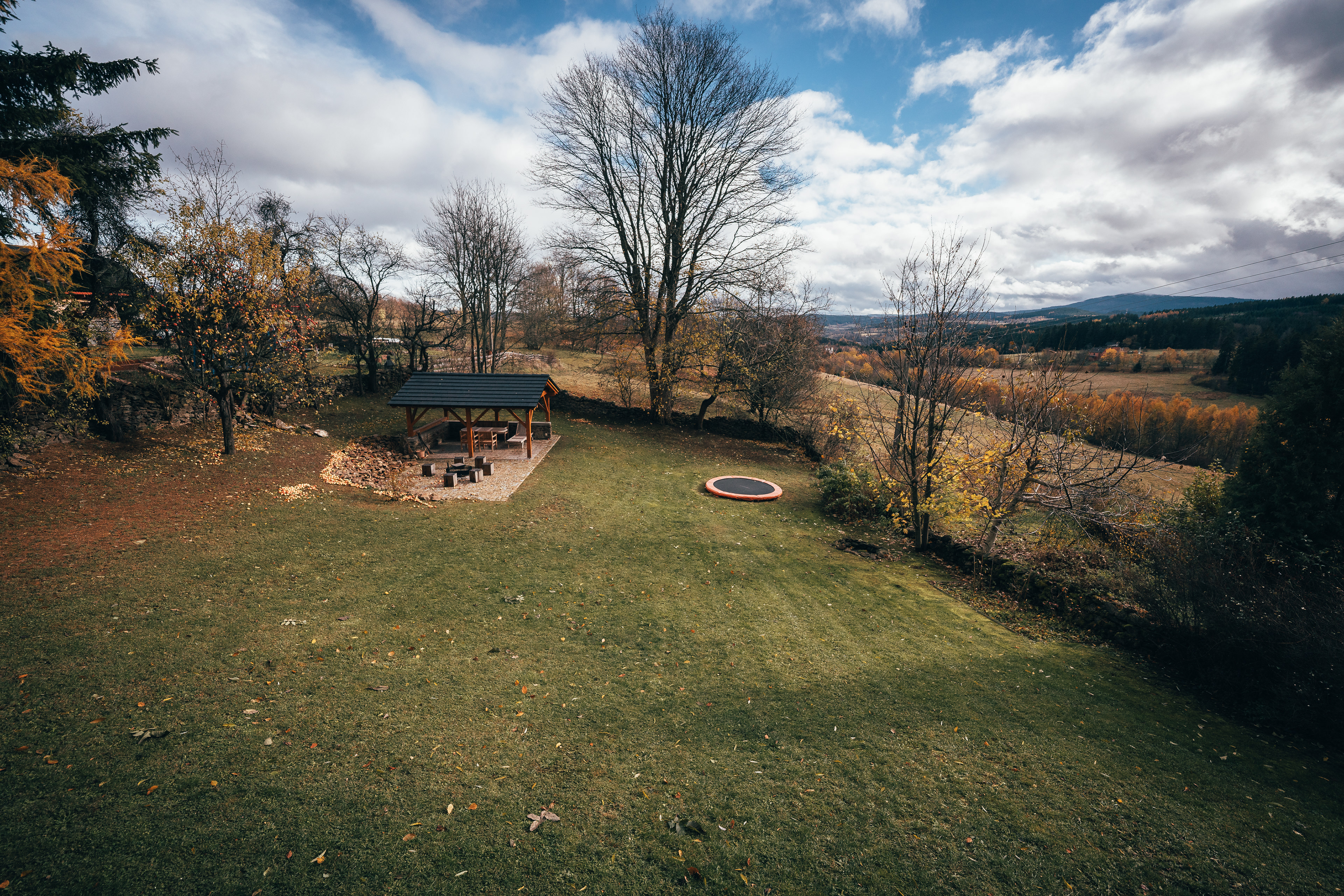 Zpátky k roubence! Obrovská zahrada, ohniště, pergola, trampolína a desítky hraček i na ven.