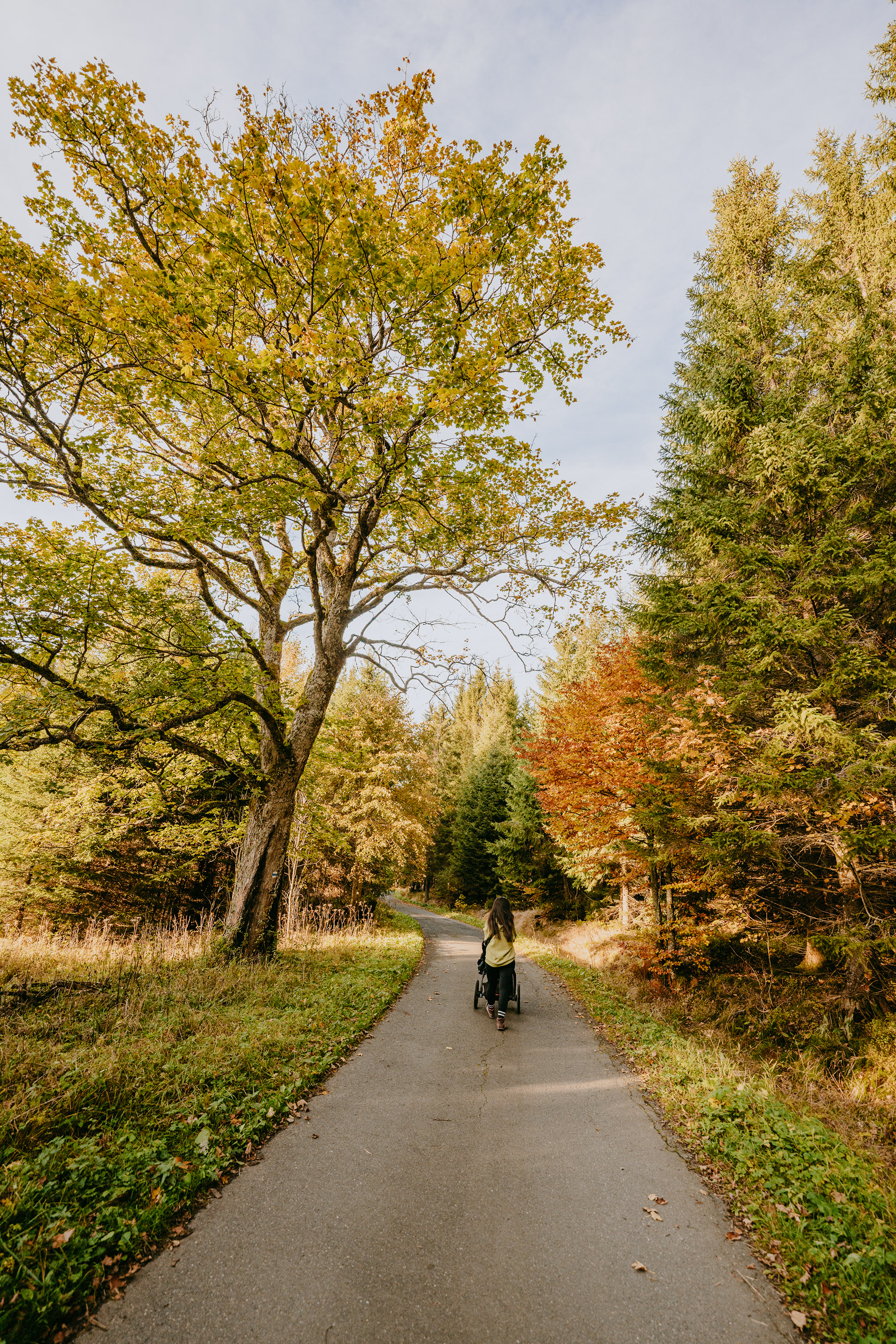 Každý asi dobře tuto nejkratší trasu z parkoviště na Nové Hůrce zná, nicméně nejhezčí je Laka v době podzimu, vyšlo nám to.