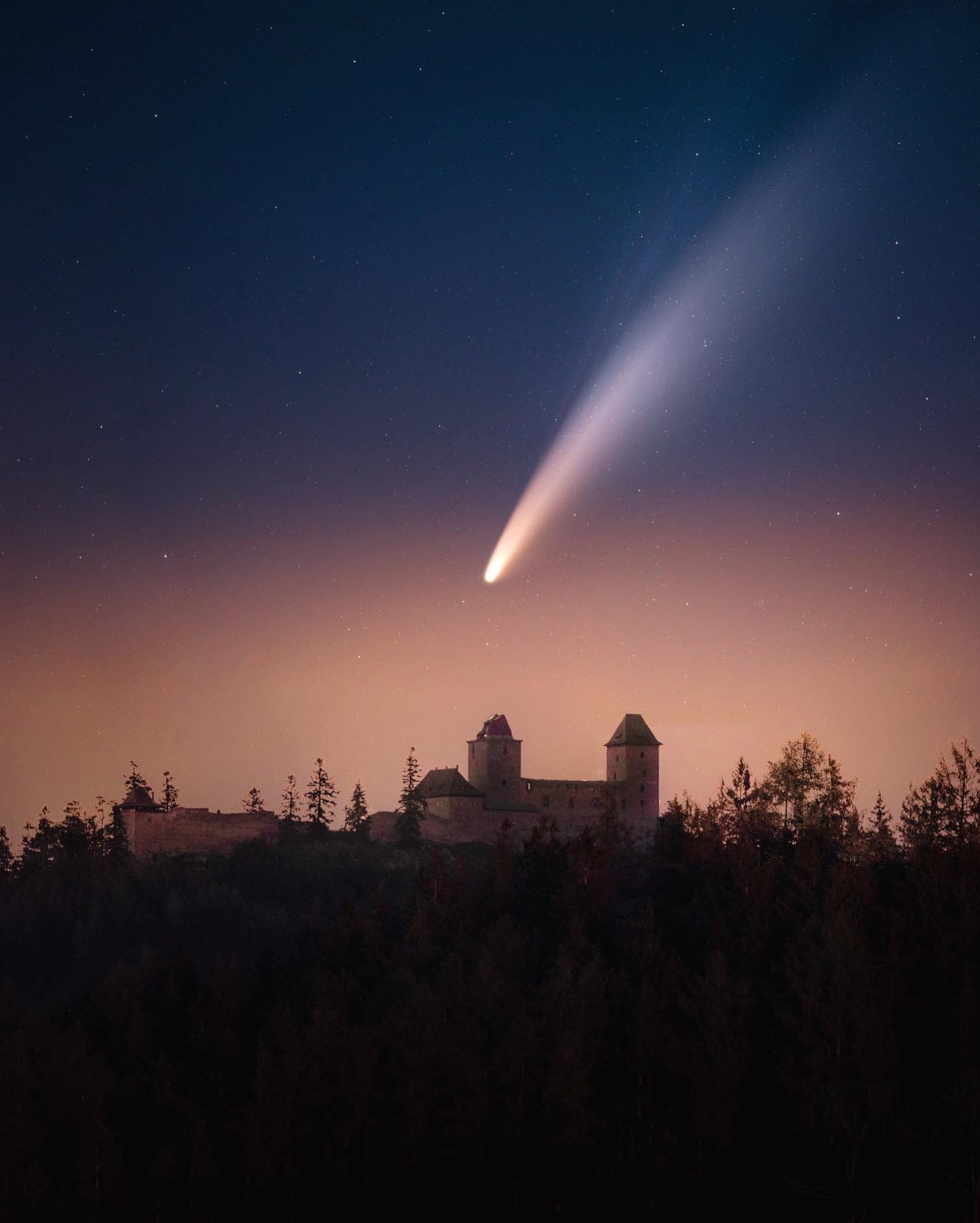 Za druhou úspěšnější lze také považovat kometu Neowise nad hradem Kašperk nebo Perseidy nad Chalupskou slatí, které publikovali také v přehledu NASA.