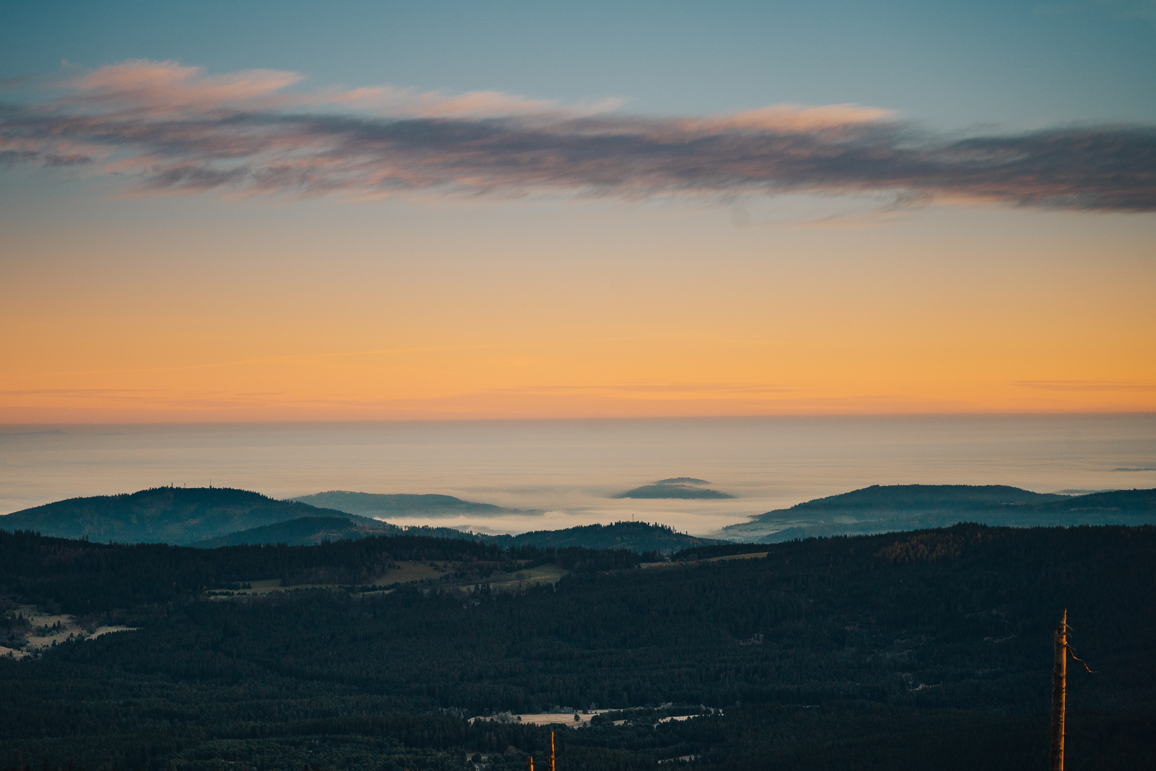 Další bolavé vstávání, chvilka přemlouvání následována přílivem radosti a úspěchu. Tak nějak se dá popsat ráno nadšence východů slunce na Šumavě. Lépe řečeno podzimního nadšence východů slunce, protože v létě ve 2 ráno asi fakt vstávat nechci. Listopad je navíc měsíc inverzí a ještě letos nebyl ani sníh, takže to byla sázka na jistotu a pohodu.