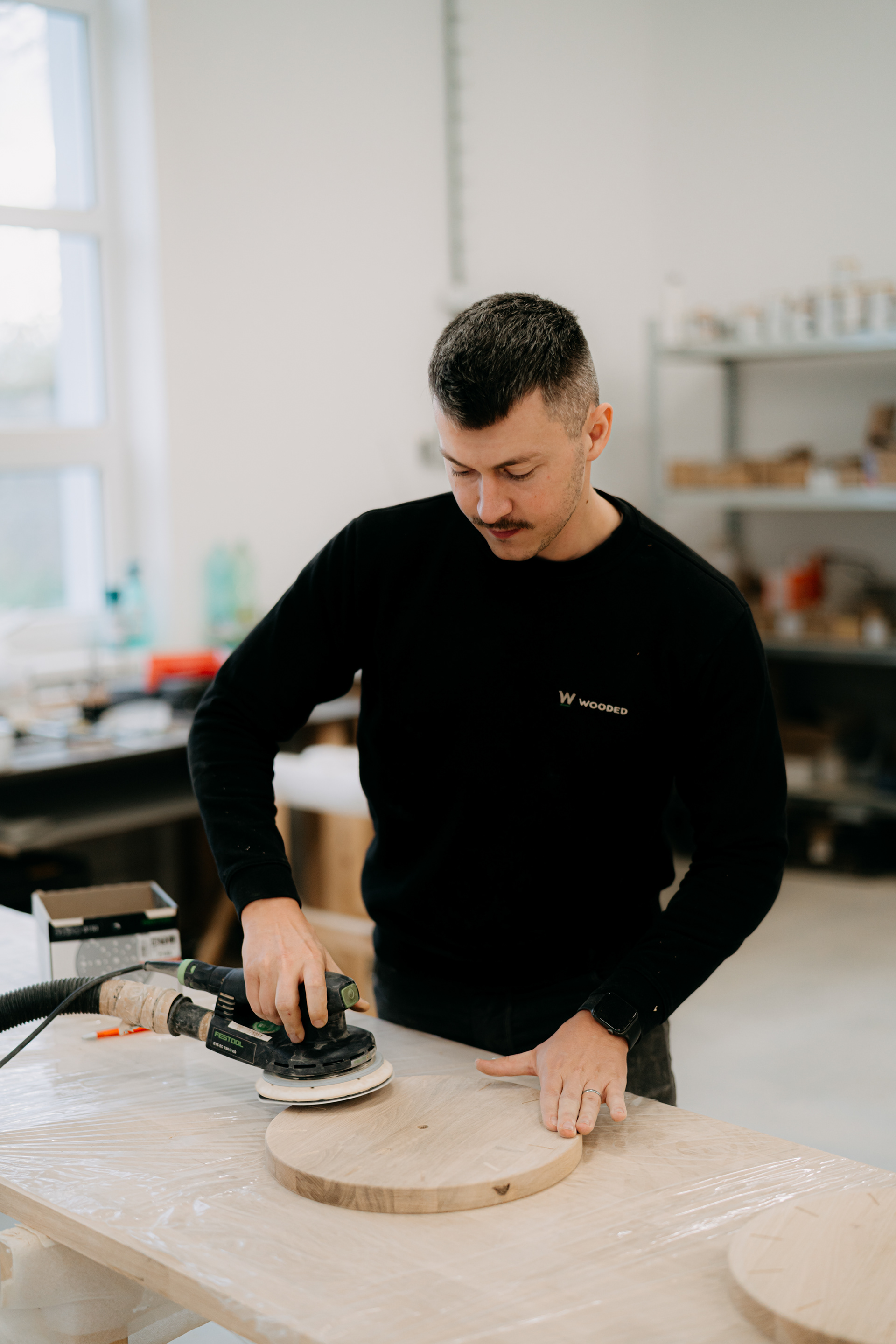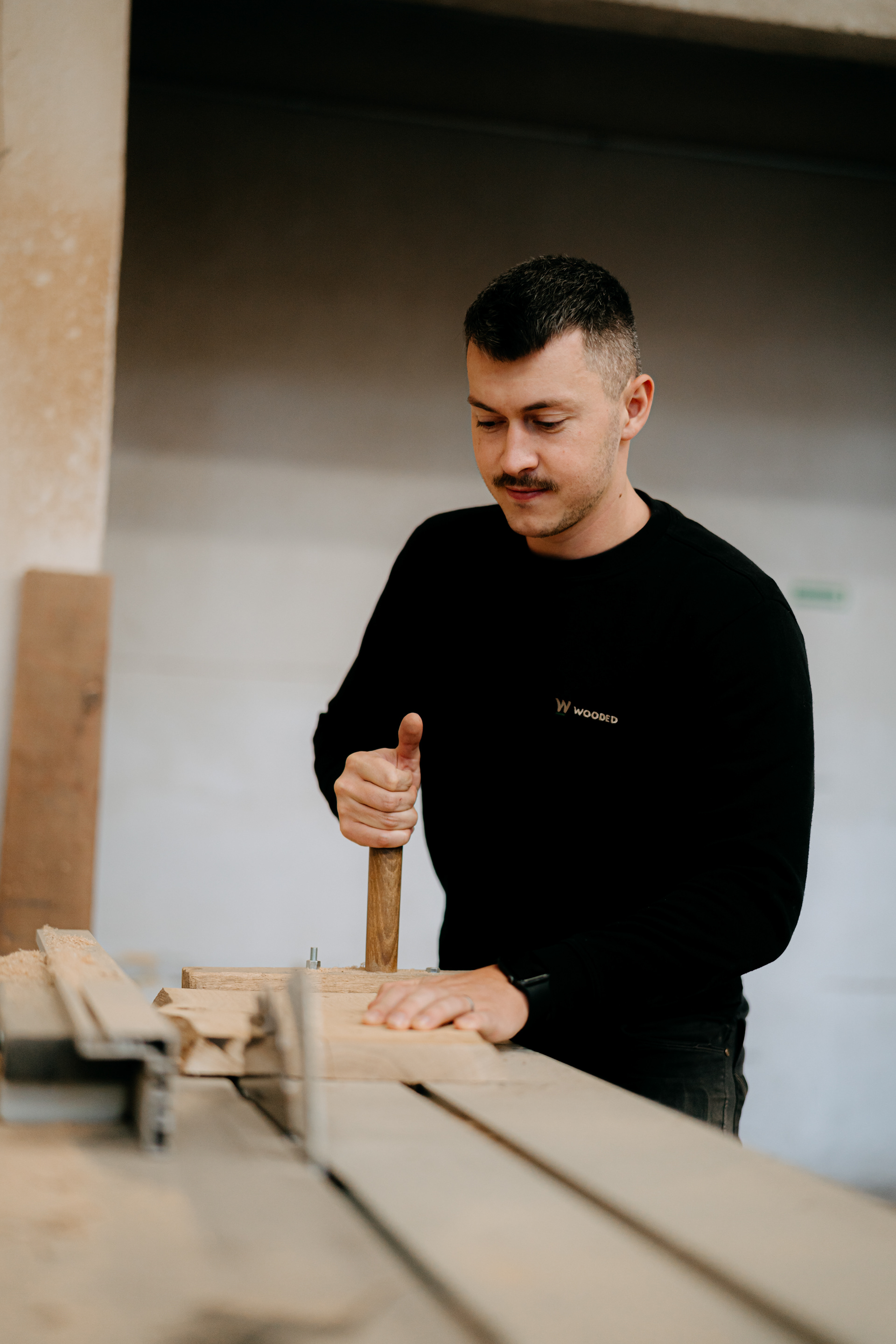 "Wooded jsme založili přibližně před pěti lety. Hlavním impulzem byla touha uniknout od sériové nábytkářské výroby a práce pro firemní zákazníky, která tehdy tvořila – a dodnes tvoří – většinu mé každodenní práce. V té době jsem už měl poměrně jasnou představu o tom, jak vyrobit každou část stolu či židle, a tak mě napadlo: proč to všechno nesložit dohromady a nezkusit nabídnout jako hotový produkt."